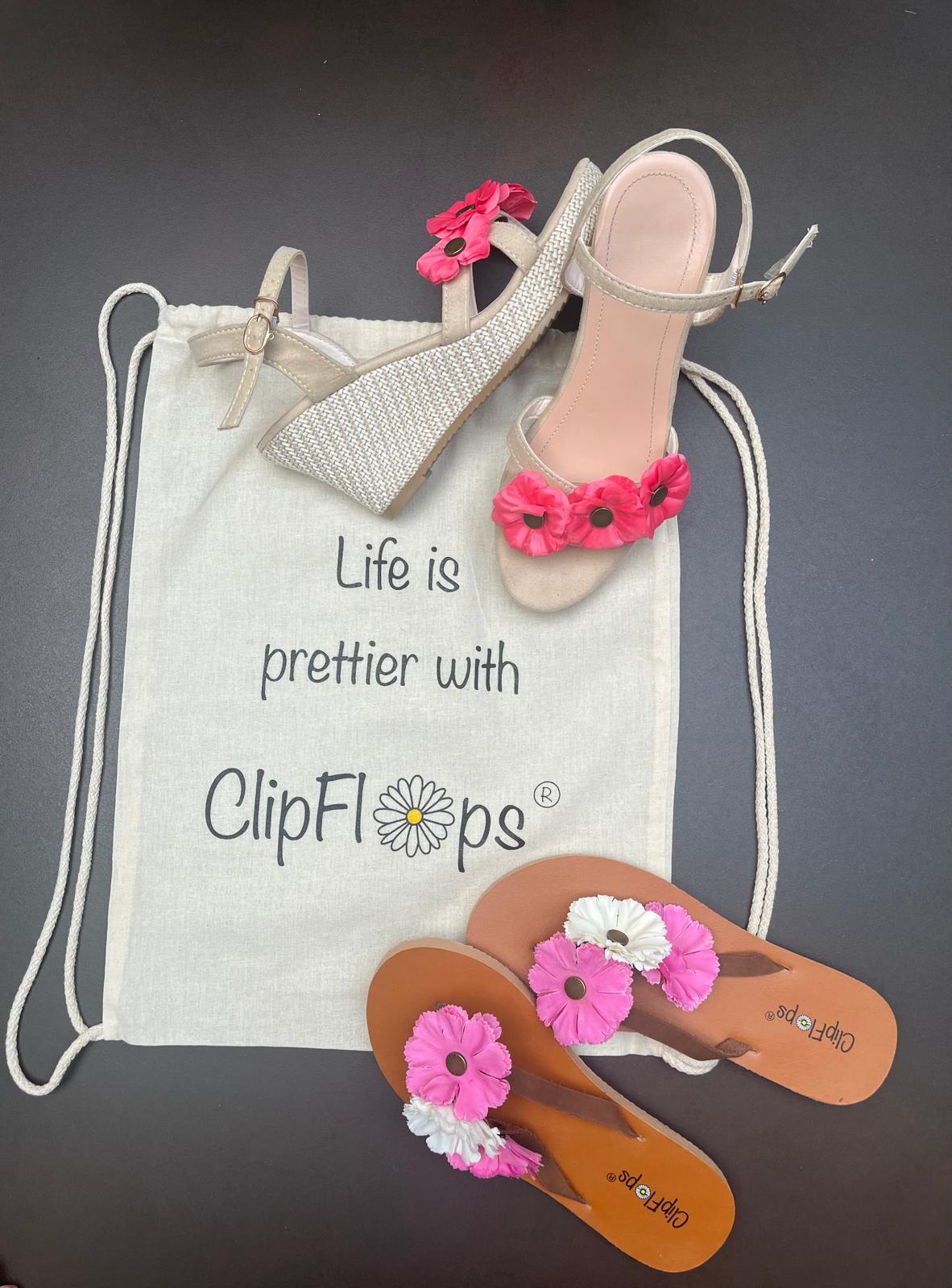 Go to main menu and order your ClipFlop & Wedges with flower of your choice and enter discount code TRAVEL at checkout to receive your discount.